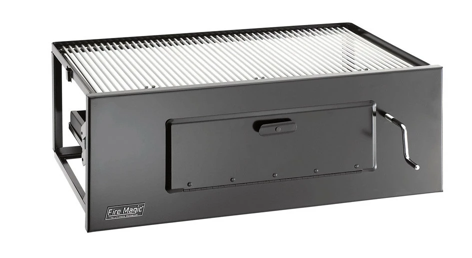 The Fire Magic Lift-A-Fire Charcoal Grill features 368 square inches of cooking area, an adjustable charcoal pan, easy access to coals through front door and stainless cooking grids. Made In USA